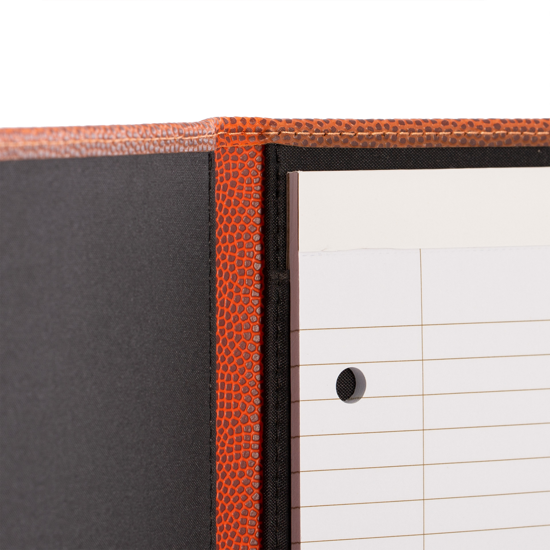 Con la marca oficial y piel del balón Oficial de la NBA, esta carpeta es tu lugar de referencia para las notas de campo e informes de exploración además de otros deberes fuera de la pista que representará a tu equipo. Con una capacidad para un bloc de notas de 8.5″ x 11″ esta duradera carpeta te aguantará durante temporadas al igual que tu pasión por este deporte.