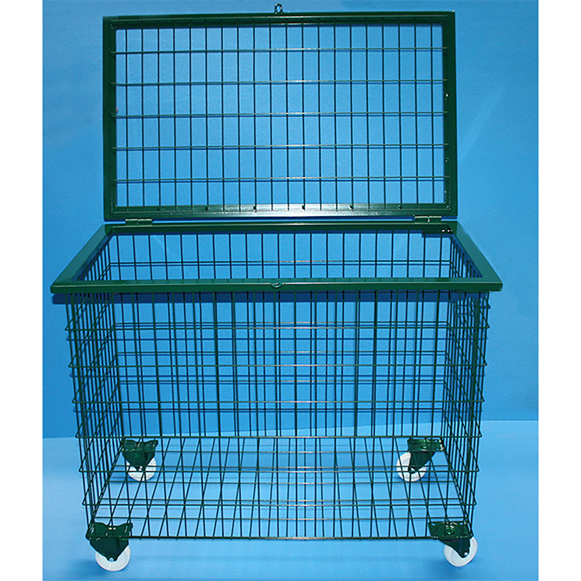 Fabricado en una sola pieza. Estructura metálica de rejilla, tapa superior con posibilidad de colocación de candado (no incluido) para su cierre y 4 ruedas (2 fijas y 2 giratorias). Capacidad: 30/35 balones en función del balón. Medidas: 110x64x88cm.