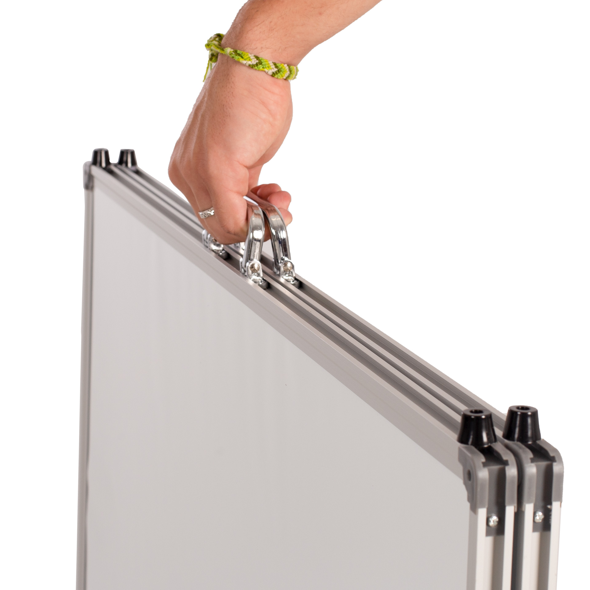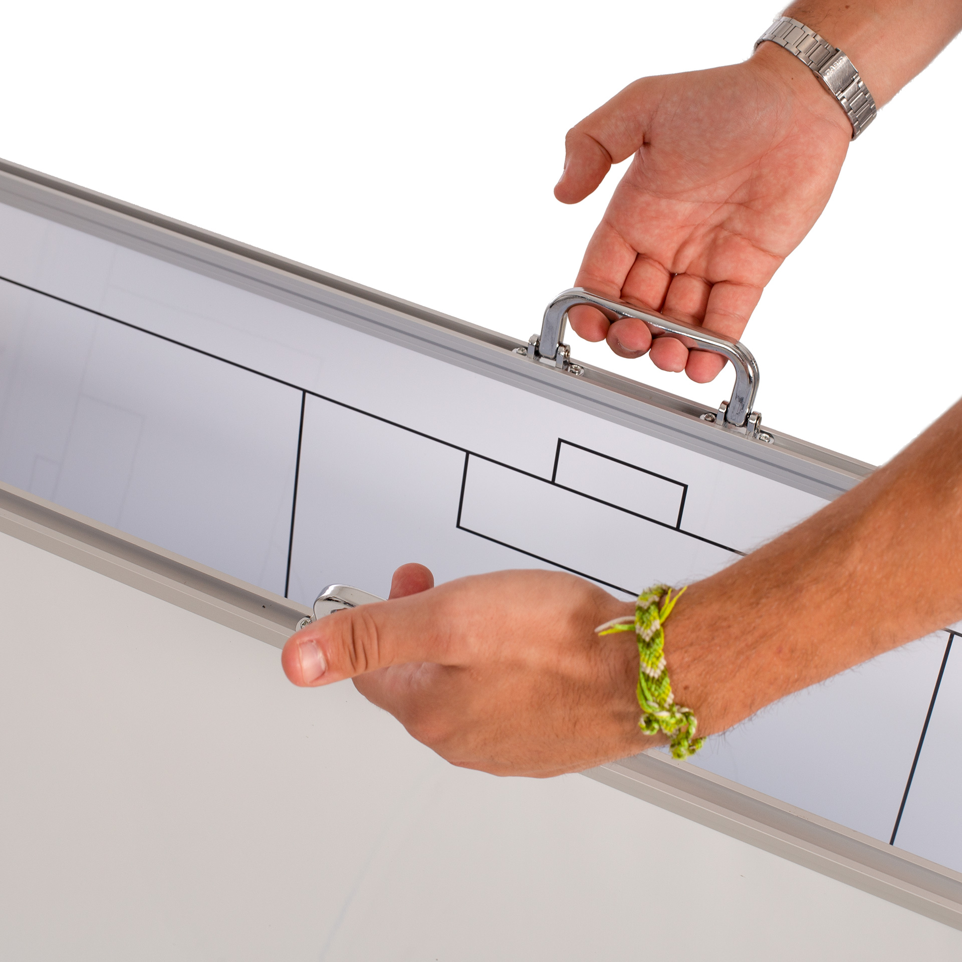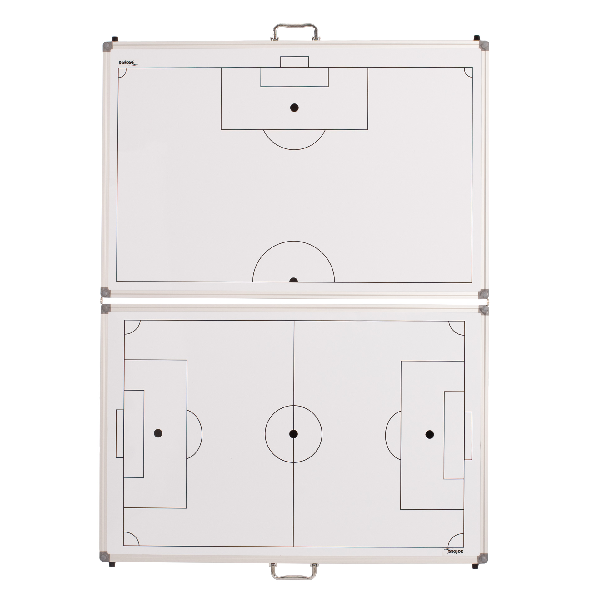 Pizarra con marco metálico, cantoneras y asas para su propio transporte. Indispensable para cualquier entrenador. Se puede plegar y facilitar así su traslado y guardado. Medida: 90x60cm.
