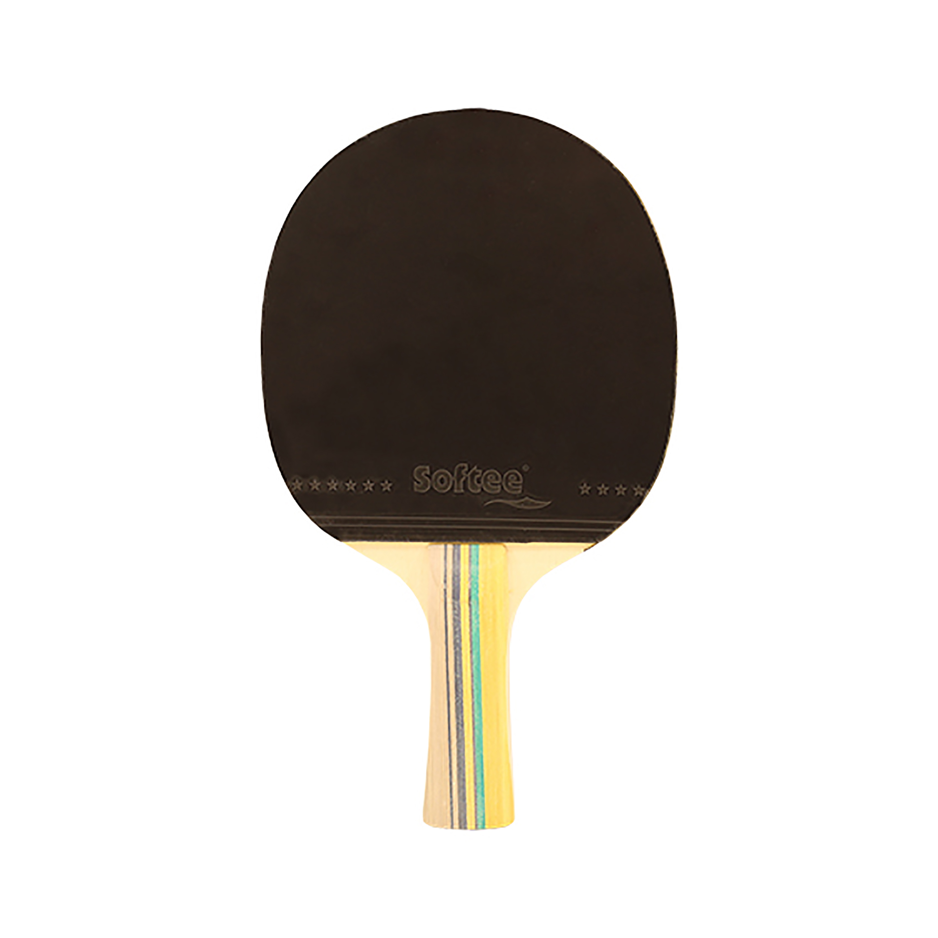 Raqueta tenis de mesa con 5 láminas, esponja de 2mm. Caras: goma lisa ambas caras. Ideal para principiantes de club. 3 estrellas.