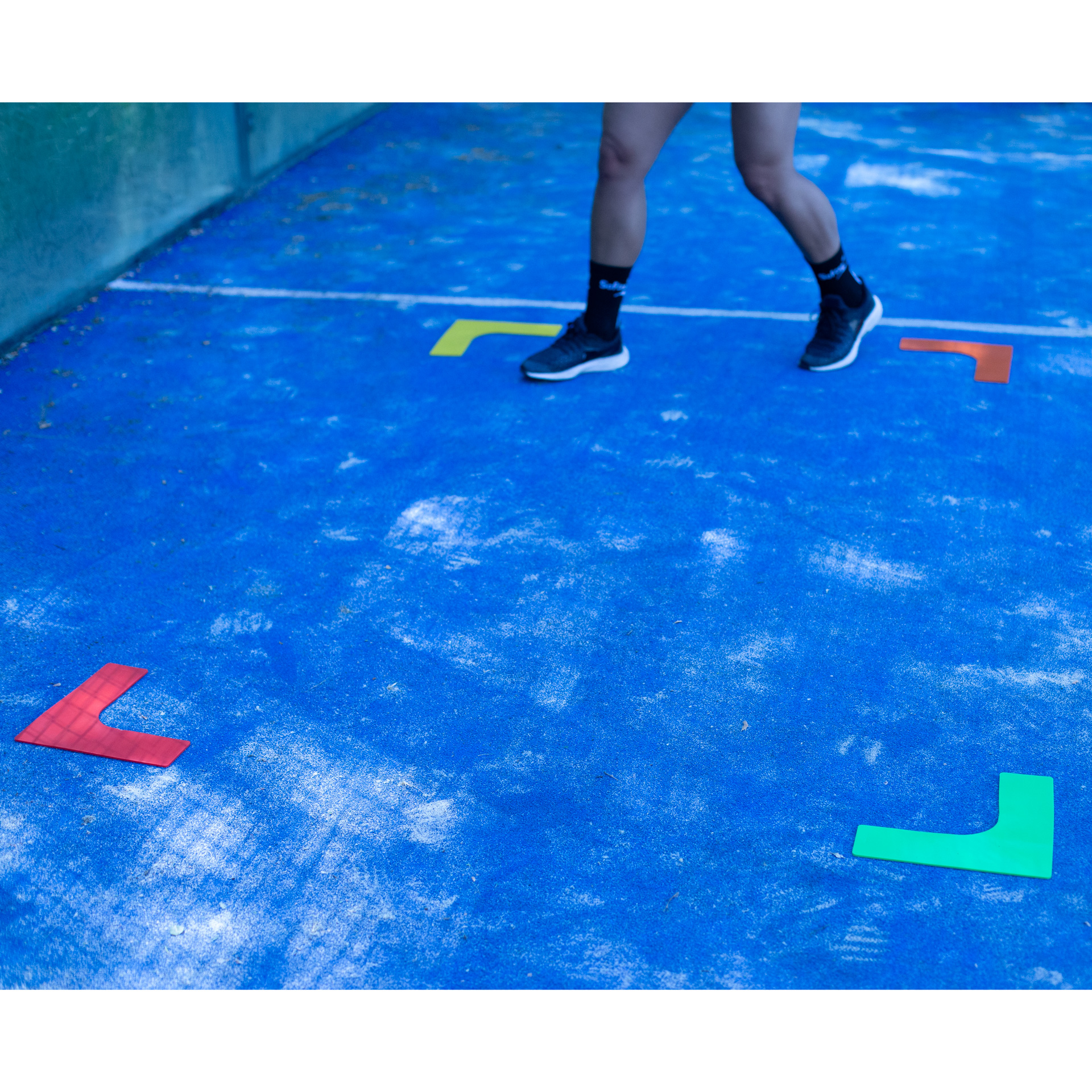 Set fabricado en material de gran calidad y durabilidad. Destinado a delimitar zonas de entrenamiento. Compuesto por 6 piezas, trazos ángulo recto. Colores: amarillo, azul, marino, rojo, naranja y verde. Medidas: 25,5×25,5×7,5cm.