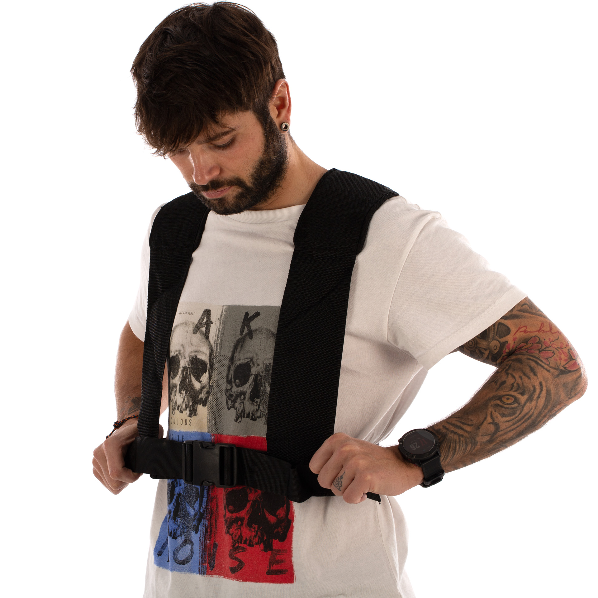 Trineo de tiro para el desarrollo de la fuerza y otro tipo de entrenamientos. Cuenta con base metálica con soporte para cargar discos y arnés